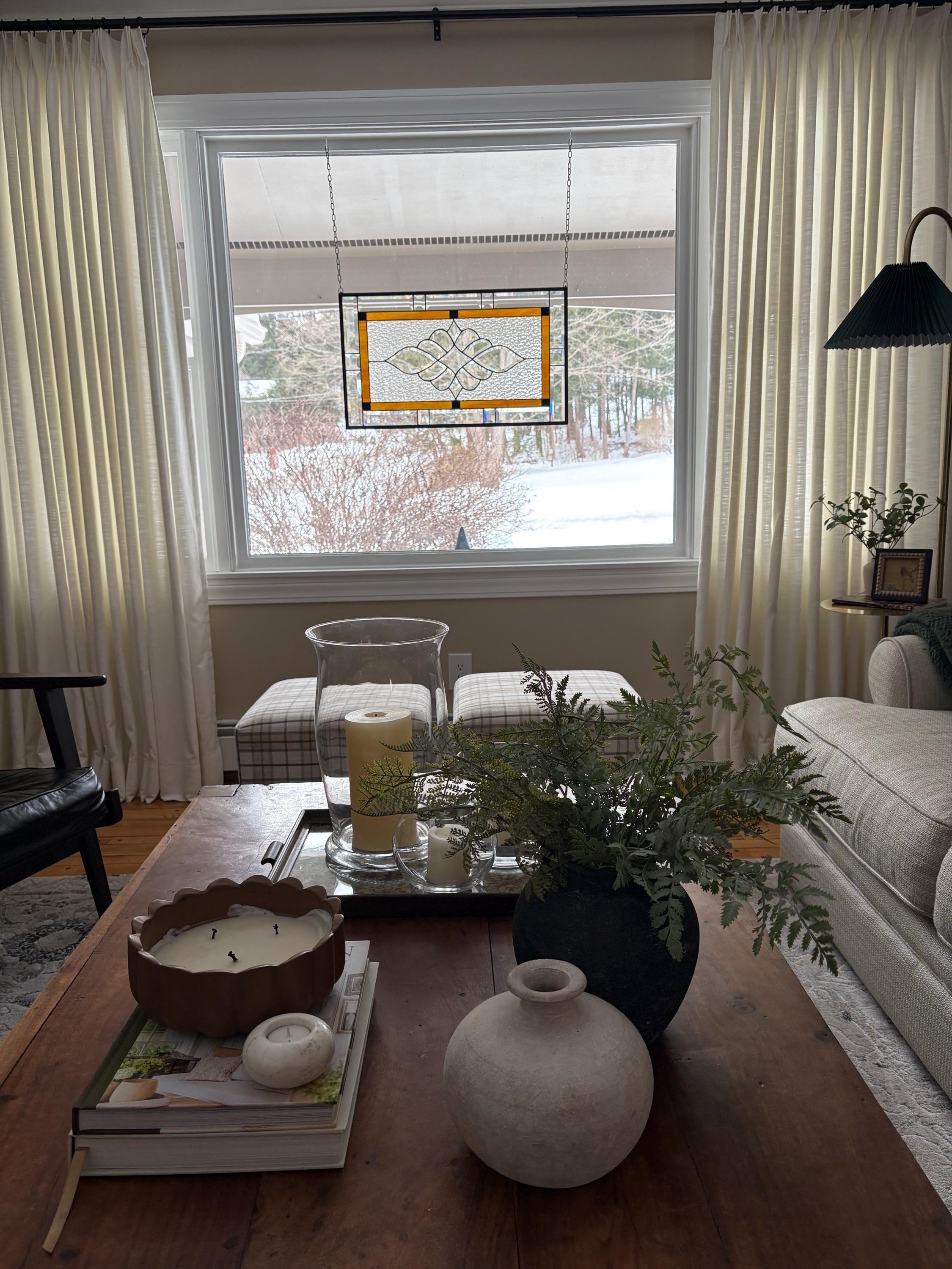 Your new stained glass panel will need minimal cleaning. Simply dust and/or wipe clean with a soft, damp cloth. If necessary you may wash your panel with water and non-bleach Dawn dishwashing soap. Your glass may also be waxed for protection by applying carnauba car wax.