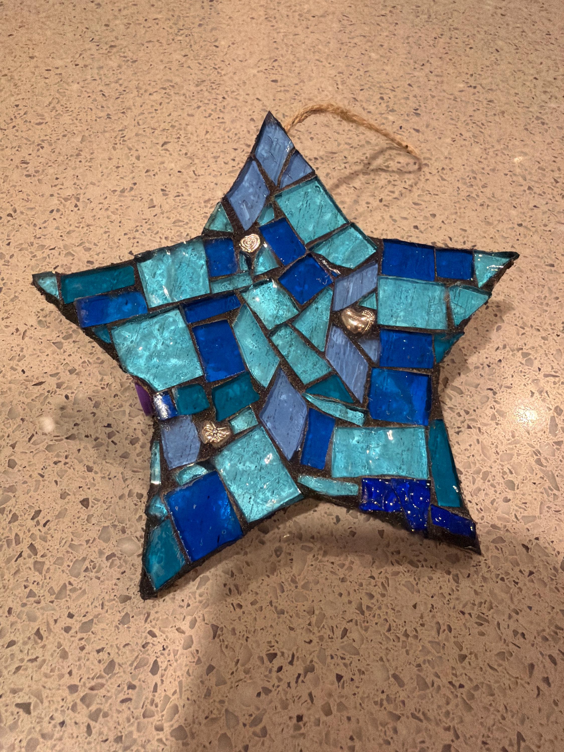 6 lbs assorted blue pieces of stained glass scraps, all with raw and uneven, unfinished edges. Various shapes, textures and sizes. This glass is an assortment of remnants from the stained glass panels you see in our shop. Pieces will vary from 2”-5” in size. Some glass is cut down for easier use and most skinny sharp edges are trimmed for safety.